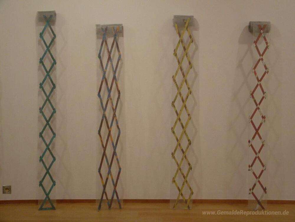 Wir bieten Ihnen eine handgefertigte Reproduktion auf Leinwand des berühmten Kunstwerks 'Petite echelles gießen Vent d'Ouest' von Daniel Dezeuze, aus dem Reproduktionsmuseum.