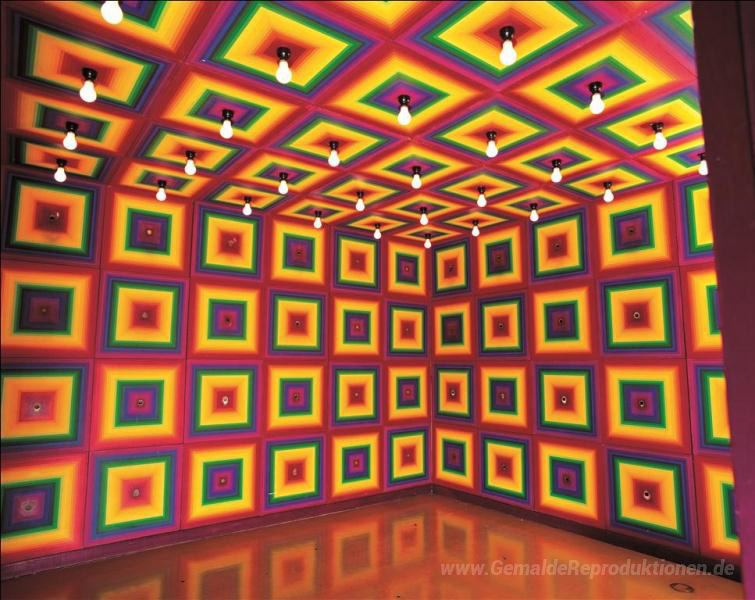 Wir bieten Ihnen eine handgefertigte Reproduktion auf Leinwand des berühmten Kunstwerks 'Regenbogen Umwelt No.7: Tactile Rainbow Room' von Ay-O, aus dem Reproduktionsmuseum.