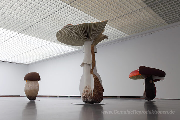 Wir bieten Ihnen eine handgefertigte Reproduktion auf Leinwand des berühmten Kunstwerks 'Riesen Dreibettzimmer Pilze' von Carsten Holler, aus dem Reproduktionsmuseum.