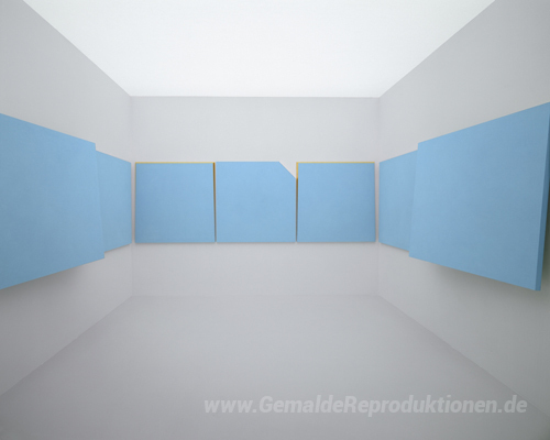 Wir bieten Ihnen eine handgefertigte Reproduktion auf Leinwand des berühmten Kunstwerks 'Stanza azzurra' von Ettore Spalletti, aus dem Reproduktionsmuseum.