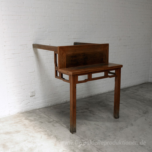 Wir bieten Ihnen eine handgefertigte Reproduktion auf Leinwand des berühmten Kunstwerks 'Tabelle mit zwei Beinen auf der Mauer' von Ai Weiwei, aus dem Reproduktionsmuseum.