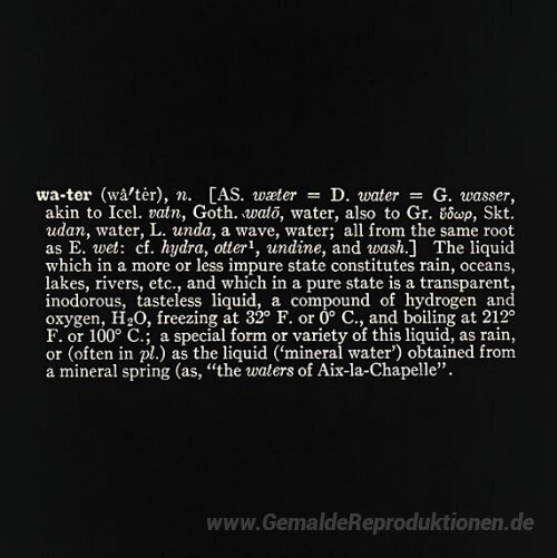 Wir bieten Ihnen eine handgefertigte Reproduktion auf Leinwand des berühmten Kunstwerks 'Titel (Kunst als Idee als Idee) (Water)' von Joseph Kosuth, aus dem Reproduktionsmuseum.