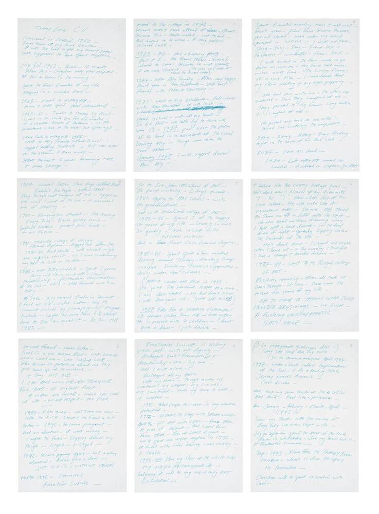 Wir bieten Ihnen eine handgefertigte Reproduktion auf Leinwand des berühmten Kunstwerks 'Tracey Emin C.V.' von Tracey Emin, aus dem Reproduktionsmuseum.