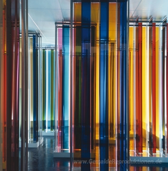 Wir bieten Ihnen eine handgefertigte Reproduktion auf Leinwand des berühmten Kunstwerks 'Transchromie (aus der Ausstellung "Cruz-Diez. Cinq Sätze sur la ' von Carlos Cruz-Diez, aus dem Reproduktionsmuseum.