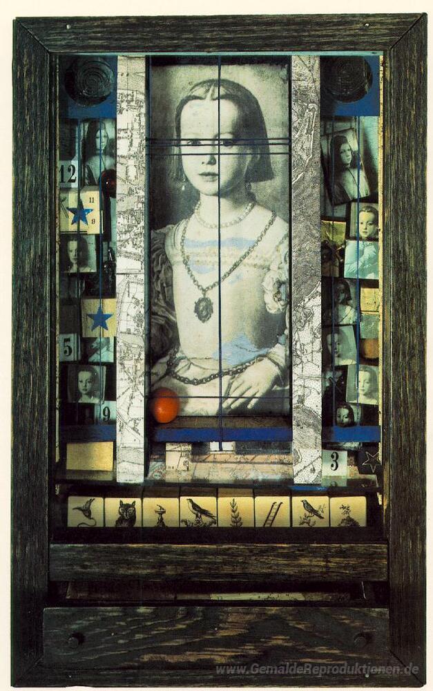Wir bieten Ihnen eine handgefertigte Reproduktion auf Leinwand des berühmten Kunstwerks 'Untitled (Medici Princess)' von Joseph Cornell, aus dem Reproduktionsmuseum.
