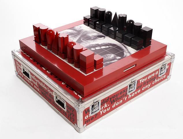 Wir bieten Ihnen eine handgefertigte Reproduktion auf Leinwand des berühmten Kunstwerks 'Untitled (Schachbrett)' von Barbara Kruger, aus dem Reproduktionsmuseum.