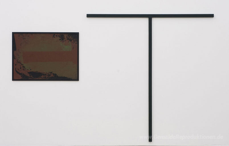Wir bieten Ihnen eine handgefertigte Reproduktion auf Leinwand des berühmten Kunstwerks 'untitled (T-förmiges Objekt mit Gouache)' von Blinky Palermo, aus dem Reproduktionsmuseum.