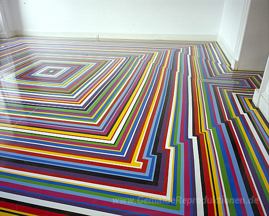Wir bieten Ihnen eine handgefertigte Reproduktion auf Leinwand des berühmten Kunstwerks 'Zobop (Installationsansicht)' von Jim Lambie, aus dem Reproduktionsmuseum.