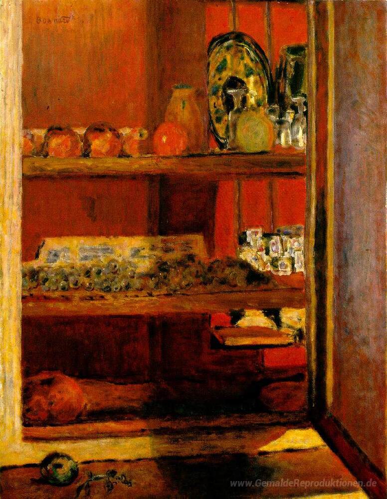 Wir bieten Ihnen eine handgefertigte Reproduktion auf Leinwand des berühmten Kunstwerks 'Der rote Schrank' von Pierre Bonnard, aus dem Reproduktionsmuseum.