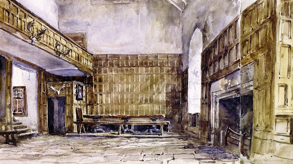 Wir bieten Ihnen eine handgefertigte Reproduktion auf Leinwand des berühmten Kunstwerks 'Die Große Halle, Haddon' von David Cox, aus dem Reproduktionsmuseum.