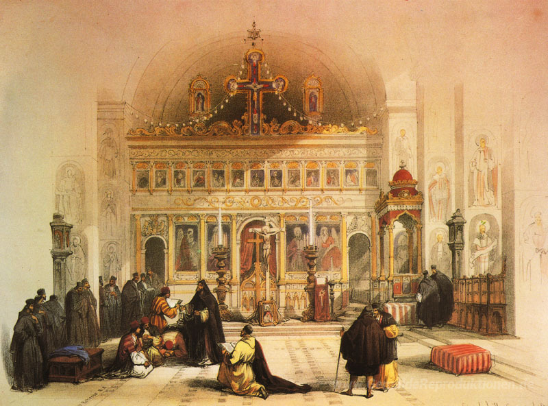 Wir bieten Ihnen eine handgefertigte Reproduktion auf Leinwand des berühmten Kunstwerks 'Die Kapelle von Saint Saba' von David Roberts, aus dem Reproduktionsmuseum.