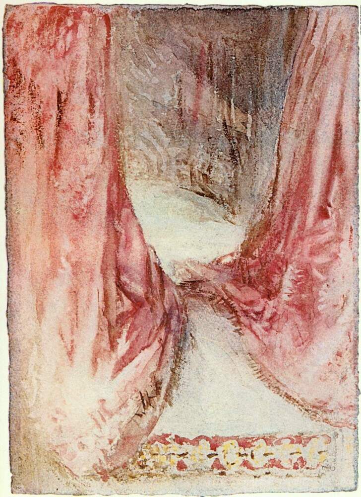 Willkommen in unserer erlesenen Auswahl an Ölgemälden, in der jede Leinwand eine Geschichte erzählt. Heute präsentieren wir Ihnen das beeindruckende Werk „Ein Bett, Vorhang-Studie“ von dem visionären Künstler William Turner. Turner, bekannt für seine innovative Nutzung von Licht und Farbe, verbindet in diesem Gemälde die Faszination des Alltäglichen mit einer außergewöhnlichen Tiefe, die den Betrachter in seinen Bann zieht.