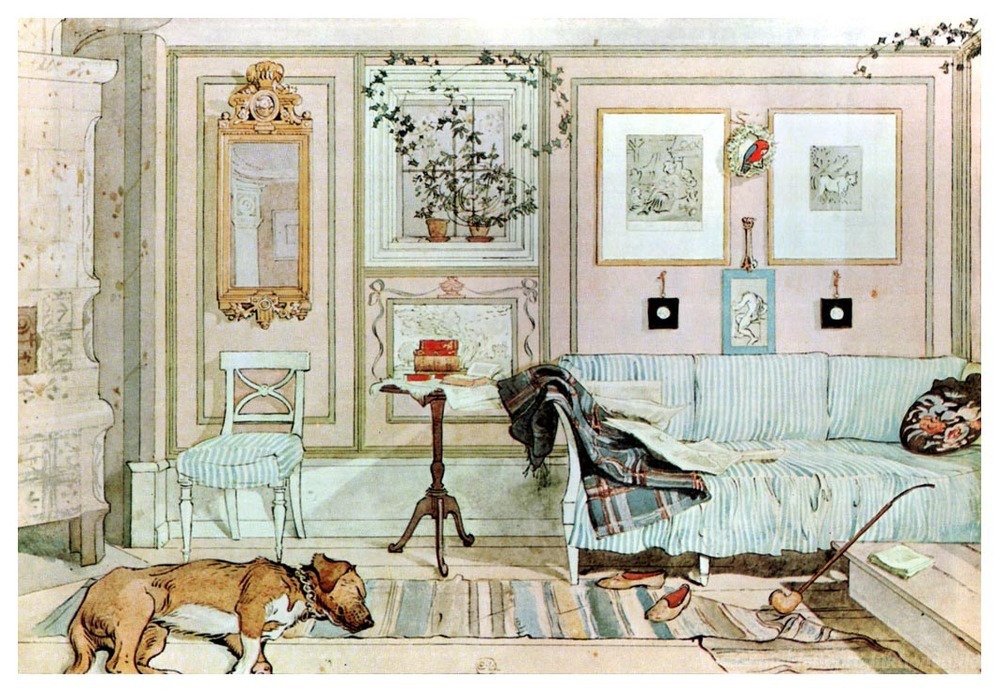 Wir bieten Ihnen eine handgefertigte Reproduktion auf Leinwand des berühmten Kunstwerks 'Faule Nook' von Carl Larsson, aus dem Reproduktionsmuseum.
