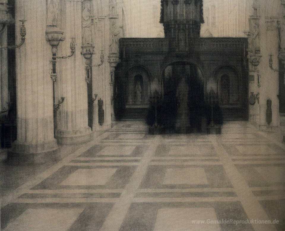 Wir bieten Ihnen eine handgefertigte Reproduktion auf Leinwand des berühmten Kunstwerks 'In Brügge. Eine Kirche' von Fernand Khnopff, aus dem Reproduktionsmuseum.
