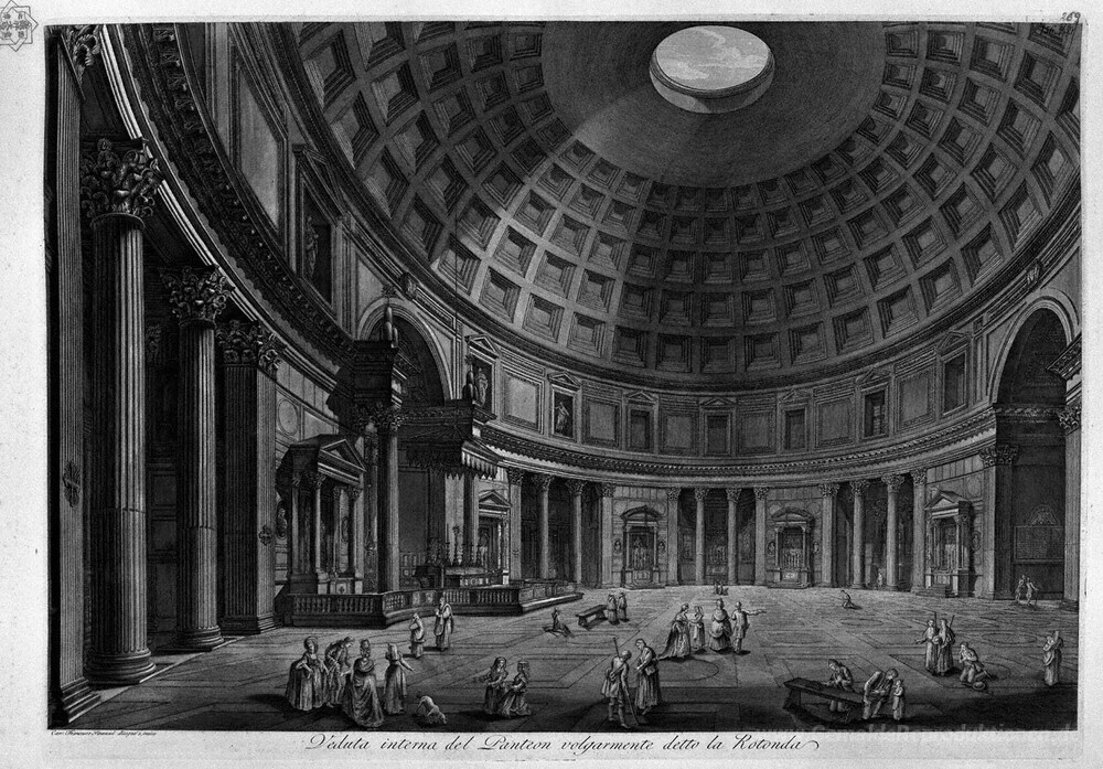 Wir bieten Ihnen eine handgefertigte Reproduktion auf Leinwand des berühmten Kunstwerks 'Innenansicht des Pantheon gemeinhin als der Rotunde bekannt' von Giovanni Battista Piranesi, aus dem Reproduktionsmuseum.
