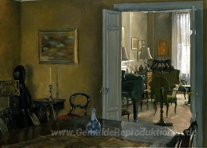 Wir bieten Ihnen eine handgefertigte Reproduktion auf Leinwand des berühmten Kunstwerks 'Innere' von Jacob Collins, aus dem Reproduktionsmuseum.