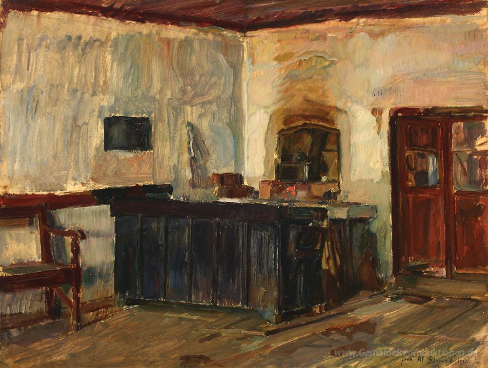Willkommen in der faszinierenden Welt der Ölgemälde, wo Farbe, Form und Emotionen in harmonischem Zusammenspiel verschmelzen. Unsere sorgfältig kuratierte Auswahl präsentiert Meisterwerke wie Interior de Posta dobrogeană von Jean Alexandru Steriadi, einem herausragenden Vertreter der rumänischen Malerei des 20. Jahrhunderts. Steriadi begeistert durch seine Fähigkeit, das Alltägliche in ein außergewöhnliches visuelles Erlebnis zu verwandeln, indem er lebendige Farben und raffinierte Lichtführung einsetzt.