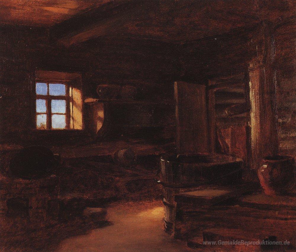Wir bieten Ihnen eine handgefertigte Reproduktion auf Leinwand des berühmten Kunstwerks 'Interior of isba' von Vasily Polenov, aus dem Reproduktionsmuseum.