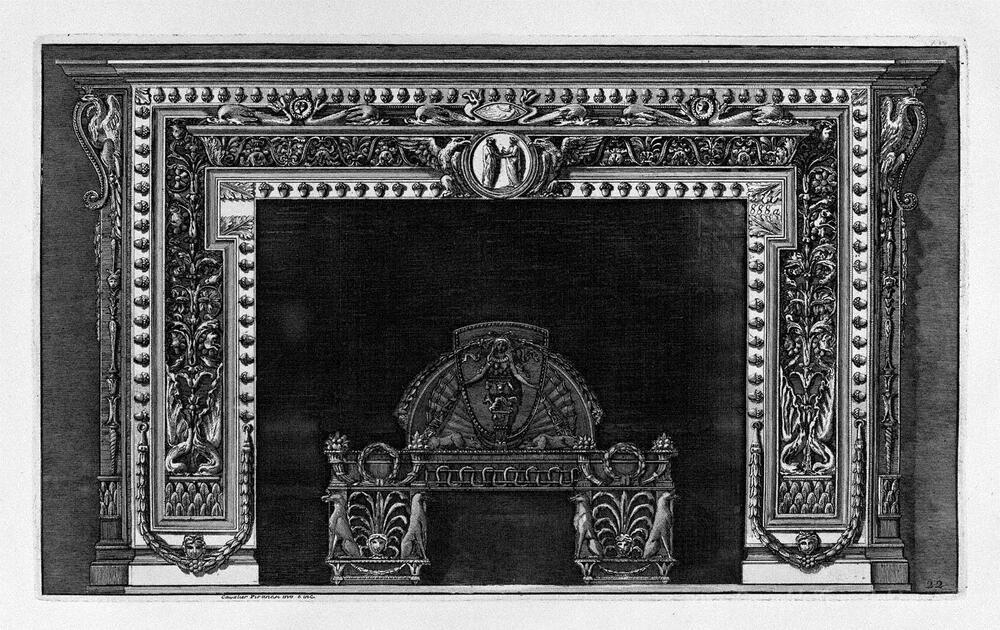 Wir bieten Ihnen eine handgefertigte Reproduktion auf Leinwand des berühmten Kunstwerks 'Kamin mit einem Cameo-Auftritt in dem Fries und Grenz von kleine' von Giovanni Battista Piranesi, aus dem Reproduktionsmuseum.