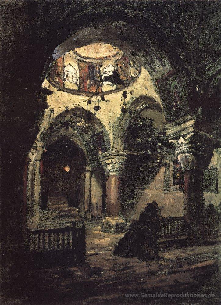 Wir bieten Ihnen eine handgefertigte Reproduktion auf Leinwand des berühmten Kunstwerks 'Kirche St. Helena. Seitenschiff der Tempel des Heiligen Grabes.' von Vasily Polenov, aus dem Reproduktionsmuseum.