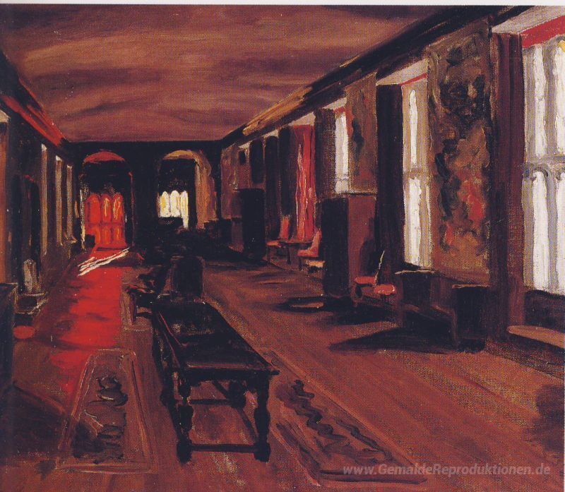 Wir bieten Ihnen eine handgefertigte Reproduktion auf Leinwand des berühmten Kunstwerks 'Long Gallery am Sutton Place, in der Nähe von Guildford' von Winston Churchill, aus dem Reproduktionsmuseum.
