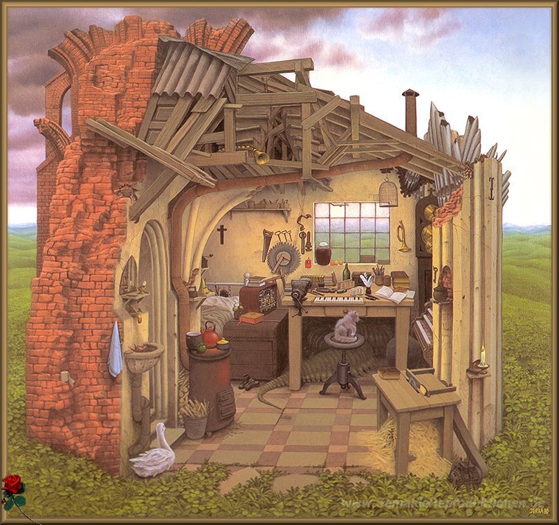 Der einzigartige Stil von Jacek Yerka kombiniert meisterhafte technische Fähigkeiten mit einer unverwechselbaren Bildsprache, die sowohl nostalgisch als auch zeitgenössisch wirkt. Seine Werke, wie Nachmittag mit den Bros Grimm, fördern nicht nur eine Atmosphäre der Kreativität und Inspiration, sondern bringen auch eine harmonische Verbindung zwischen Tradition und Modernität in jeden Raum. Lassen Sie sich von der Magie seiner Kunst entführen und verleihen Sie Ihrem Zuhause eine unverwechselbare Note.