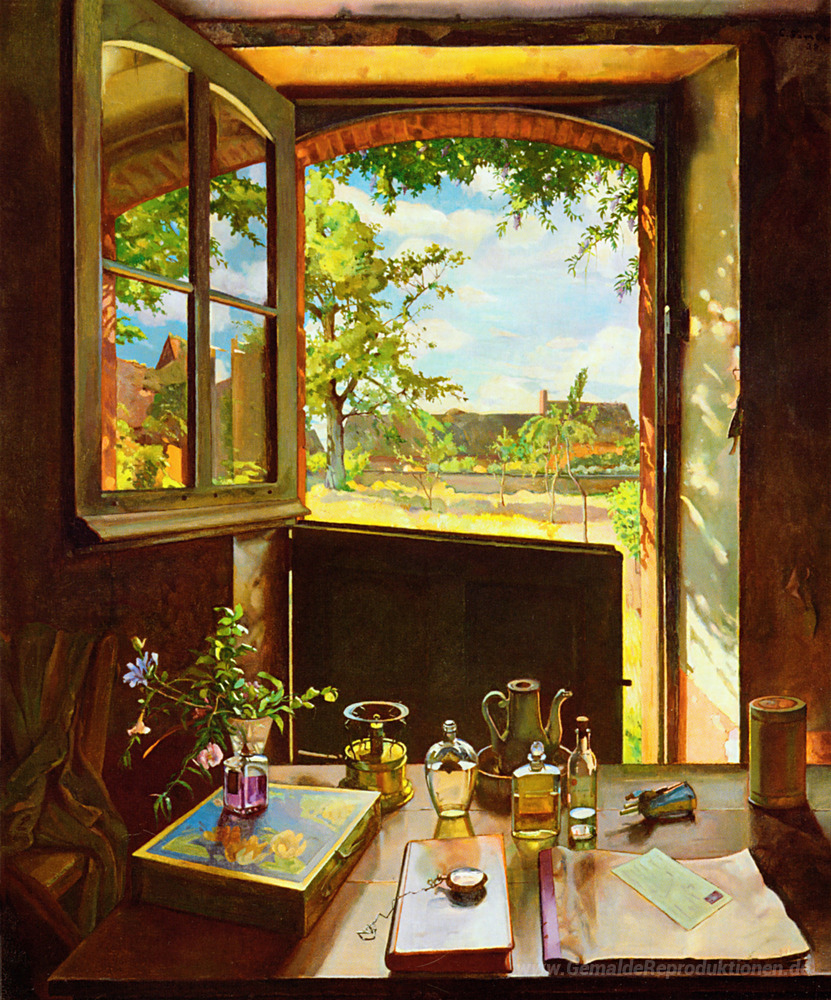 Wir bieten Ihnen eine handgefertigte Reproduktion auf Leinwand des berühmten Kunstwerks 'Offene Tür auf einem Garten' von Konstantin Somov, aus dem Reproduktionsmuseum.