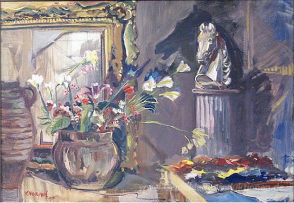 Die Verwendung traditioneller künstlerischer Techniken, kombiniert mit einem modernen Ansatz, verleiht Niarchos' Werken sowohl klassisches als auch zeitgenössisches Flair. Ob als eindrucksvoller Blickfang im Wohnzimmer oder als harmonisches Element in Ihrem Arbeitsraum – ein Ölgemälde von Costas Niarchos verwandelt jeden Raum in eine Oase der Kreativität und Inspiration. Entdecken Sie die transformative Kraft der Kunst und verleihen Sie Ihrem Ambiente den besonderen Feinschliff!