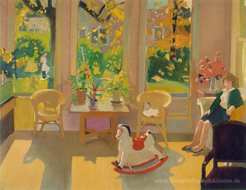 Die kunstvollen Techniken, die Fairfield Porter verwendet, kombinieren realistische Darstellung mit impressionistischen Akzenten, was den Raum, in dem sich das Gemälde befindet, lebendig gestaltet. Das Gemälde schafft nicht nur eine visuelle Anziehungskraft, sondern beeinflusst auch die Atmosphäre Ihres Zuhauses. Lassen Sie sich von der zeitlosen Eleganz des Ölgemäldes Oktober Interior inspirieren und verwandeln Sie Ihren Wohnraum in einen Ort der Kreativität und Ruhe.