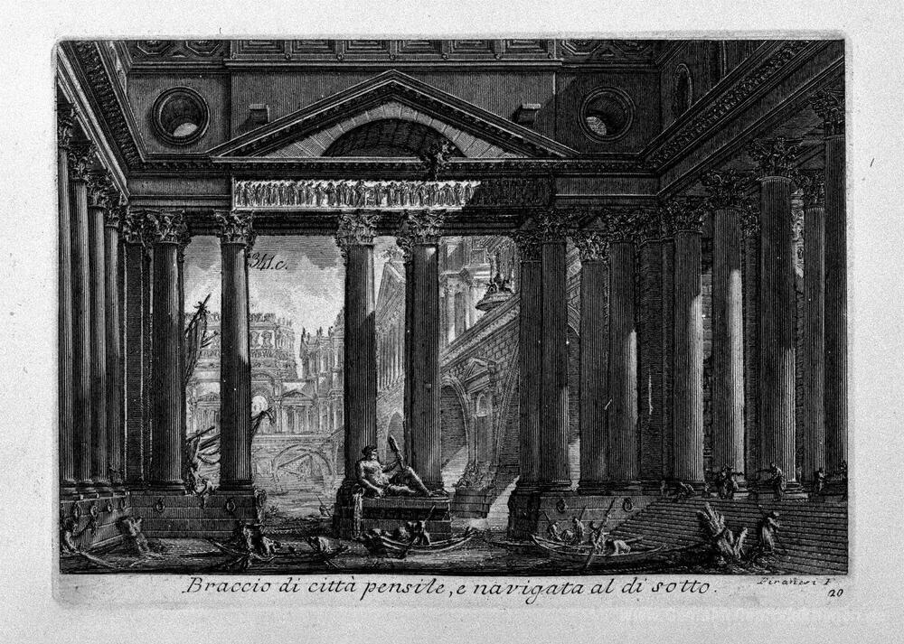 Ölgemälde wie dieses fügen nicht nur Farbe und Struktur hinzu, sondern bringen auch ein Gefühl von Erhabenheit und Geschichte in Ihre Wohn- oder Geschäftsräume. Die atmosphärische Wirkung von Piranesis Kunst kann Räume verwandeln, indem sie eine elegante und zugleich dramatische Note verleiht. Lassen Sie sich inspirieren und entdecken Sie die zeitlose Schönheit, die ein Meisterwerk wie Porches gezogen um ein Loch auf den Königspalast in Ihr Zuhause bringen kann.