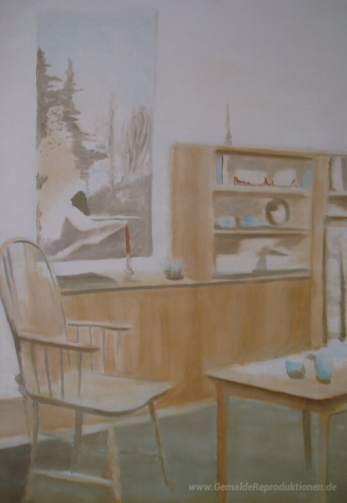 Wir bieten Ihnen eine handgefertigte Reproduktion auf Leinwand des berühmten Kunstwerks 'Salon' von Luc Tuymans, aus dem Reproduktionsmuseum.