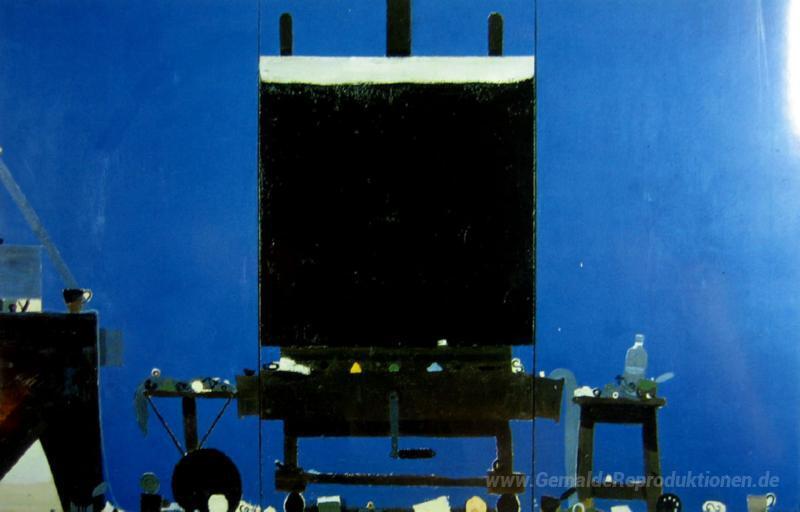 Wir bieten Ihnen eine handgefertigte Reproduktion auf Leinwand des berühmten Kunstwerks 'Studio Interior' von Dale Hickey, aus dem Reproduktionsmuseum.