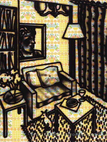 Wir bieten Ihnen eine handgefertigte Reproduktion auf Leinwand des berühmten Kunstwerks 'Suburban Innen' von Howard Arkley, aus dem Reproduktionsmuseum.