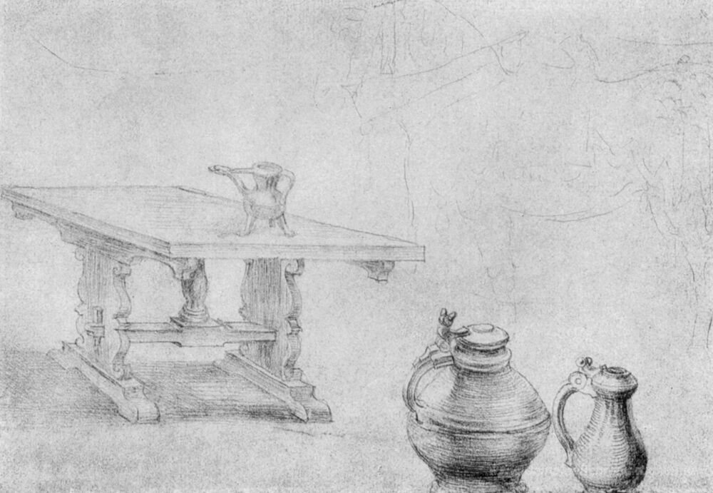 Wir bieten Ihnen eine handgefertigte Reproduktion auf Leinwand des berühmten Kunstwerks 'Tabelle und Dosen' von Albrecht Durer, aus dem Reproduktionsmuseum.