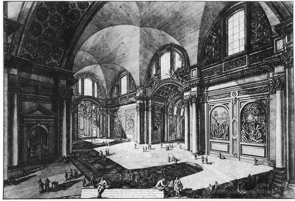 Wir bieten Ihnen eine handgefertigte Reproduktion auf Leinwand des berühmten Kunstwerks 'Vedute di Roma' von Giovanni Battista Piranesi, aus dem Reproduktionsmuseum.