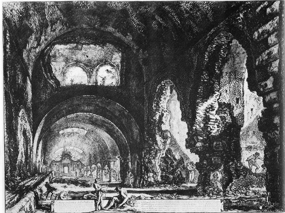 Wir bieten Ihnen eine handgefertigte Reproduktion auf Leinwand des berühmten Kunstwerks 'Vedute di Roma' von Giovanni Battista Piranesi, aus dem Reproduktionsmuseum.