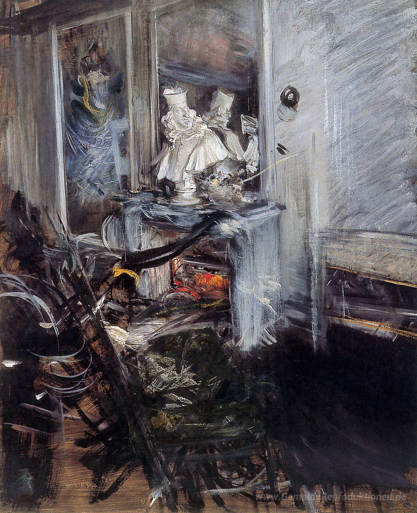 Wir bieten Ihnen eine handgefertigte Reproduktion auf Leinwand des berühmten Kunstwerks 'Zimmer des Malers' von Giovanni Boldini, aus dem Reproduktionsmuseum.
