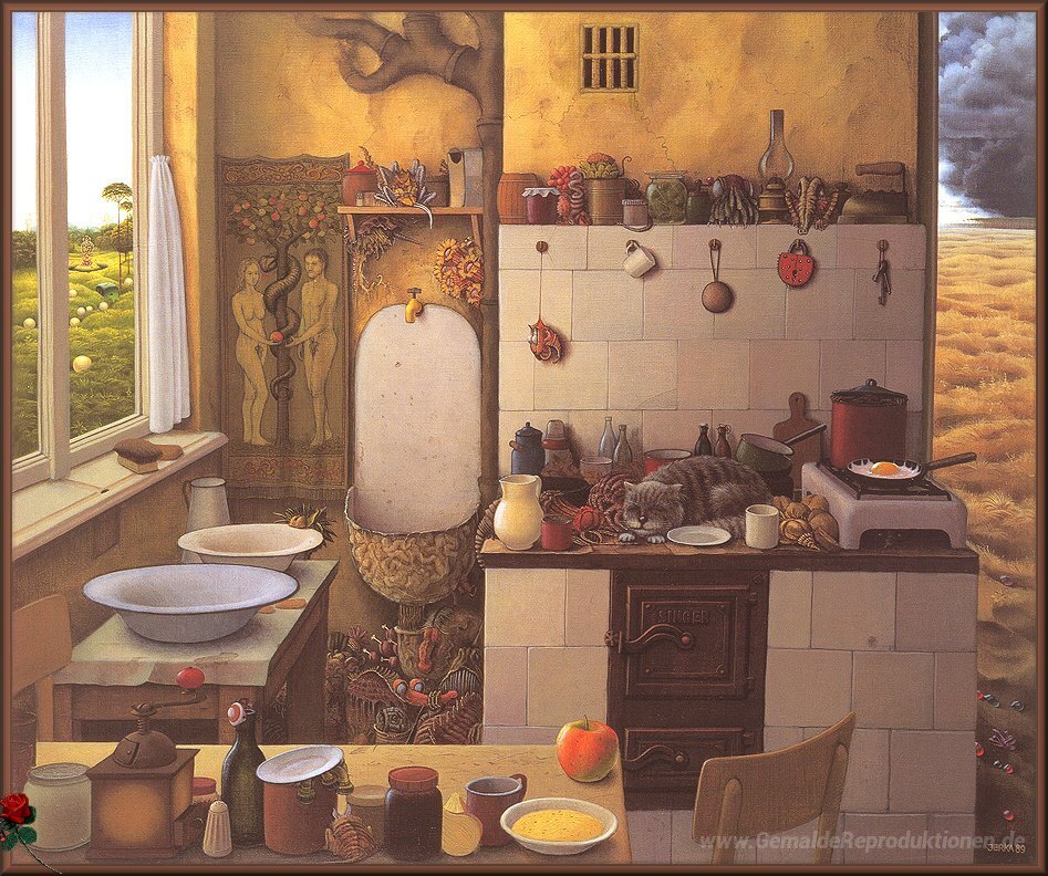 Die charakteristische Technik von Jacek Yerka kombiniert surrealistische Elemente mit lebendigen Farben und akribischer Detailtreue. Diese harmonische Komposition bringt nicht nur ästhetische Freude, sondern beeinflusst auch die Atmosphäre Ihres Wohnraums auf positive Weise. Ölgemälde wie Zwischen Himmel und Hölle verleihen jedem Raum einen Hauch von Eleganz und Persönlichkeit, während sie gleichzeitig Raum für Interpretationen und Emotionen lassen. Lassen Sie sich von der Kraft der Kunst inspirieren und entdecken Sie die transformative Wirkung dieser Meisterwerke auf Ihr Zuhause.
