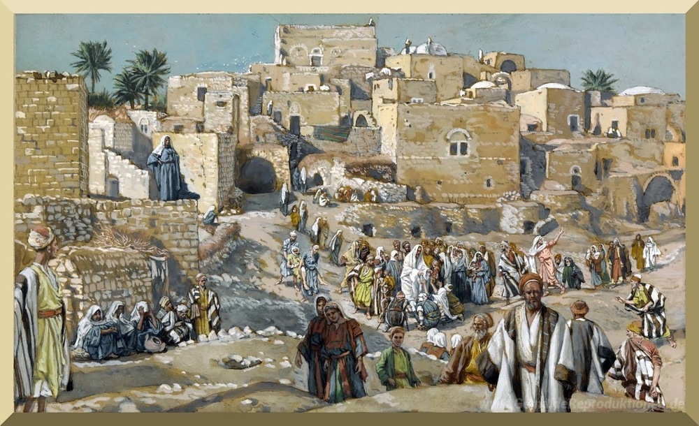 Wir bieten Ihnen eine handgefertigte Reproduktion auf Leinwand des berühmten Kunstwerks 'Er ging durch die Dörfer auf dem Weg nach Jerusalem' von James Tissot, aus dem Reproduktionsmuseum.