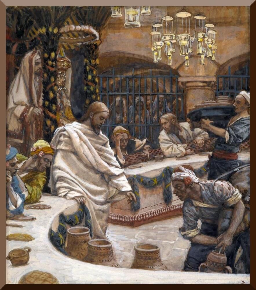 Wir bieten Ihnen eine handgefertigte Reproduktion auf Leinwand des berühmten Kunstwerks 'Weddding zu Kana' von James Tissot, aus dem Reproduktionsmuseum.