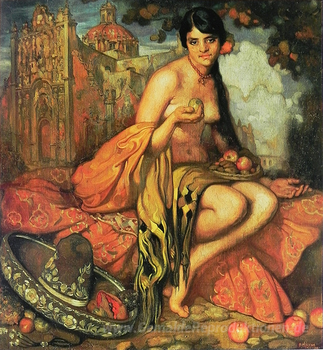 Wir bieten Ihnen eine handgefertigte Reproduktion auf Leinwand des berühmten Kunstwerks 'Unbekannter Titel' von Saturnino Herran, aus dem Reproduktionsmuseum.