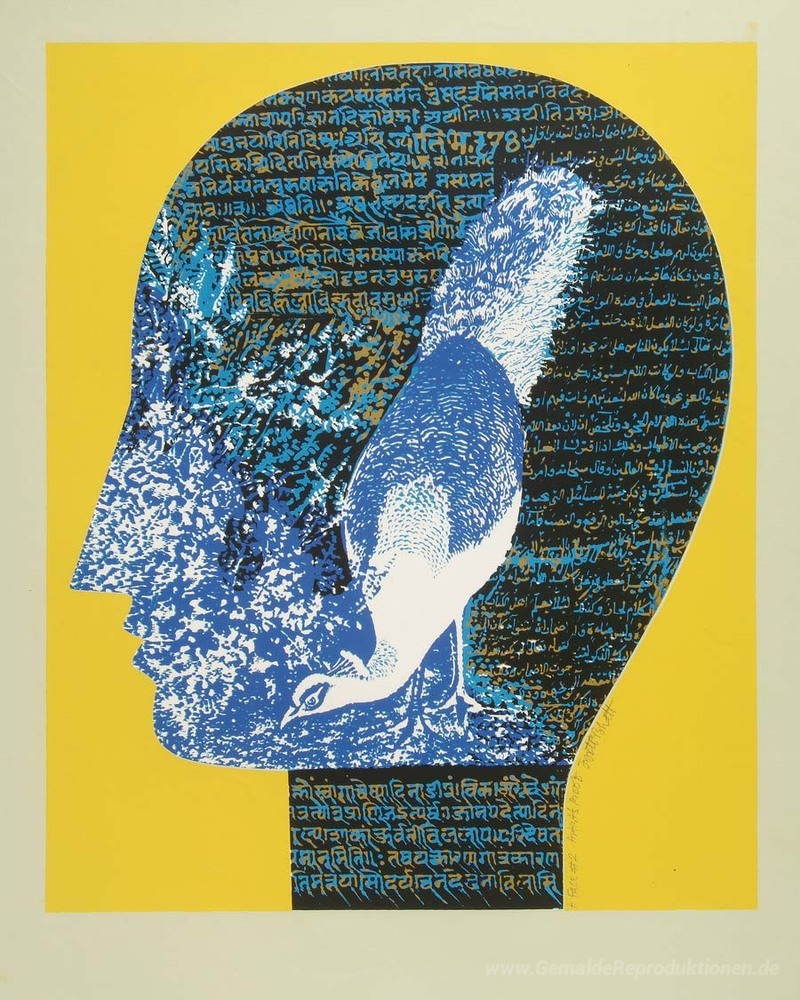 Wir bieten Ihnen eine handgefertigte Reproduktion auf Leinwand des berühmten Kunstwerks 'Ein Gesicht' von Jyoti Bhatt, aus dem Reproduktionsmuseum.
