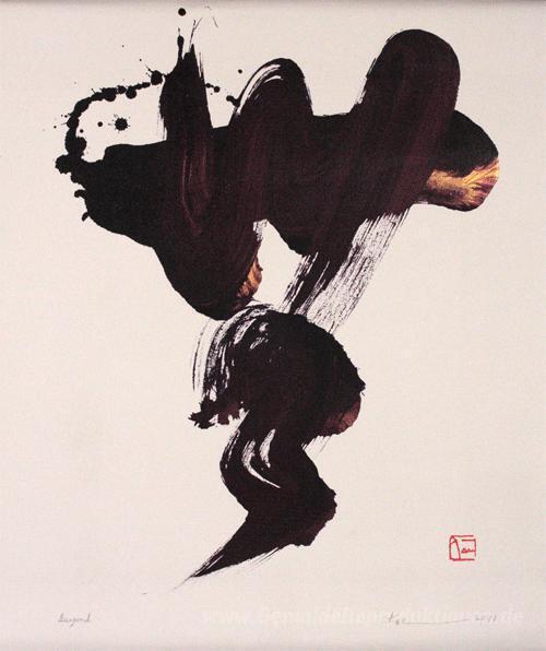 Wir bieten Ihnen eine handgefertigte Reproduktion auf Leinwand des berühmten Kunstwerks 'Darüber hinaus' von Kazuaki Tanahashi, aus dem Reproduktionsmuseum.