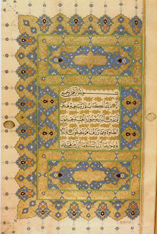 Wir bieten Ihnen eine handgefertigte Reproduktion auf Leinwand des berühmten Kunstwerks 'Heilige Koran Abdeckung' von Ahmed Karahisari, aus dem Reproduktionsmuseum.