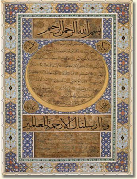 Wir bieten Ihnen eine handgefertigte Reproduktion auf Leinwand des berühmten Kunstwerks 'Hilye' von Hafiz Osman, aus dem Reproduktionsmuseum.