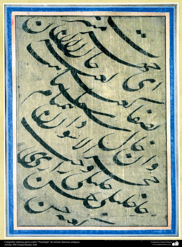 Wir bieten Ihnen eine handgefertigte Reproduktion auf Leinwand des berühmten Kunstwerks 'Kalligraphie' von Mir Emad Hassani, aus dem Reproduktionsmuseum.