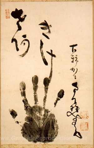 Wir bieten Ihnen eine handgefertigte Reproduktion auf Leinwand des berühmten Kunstwerks 'Nantenbo den Handdruck' von Nakahara Nantenbo, aus dem Reproduktionsmuseum.