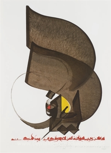 Wir bieten Ihnen eine handgefertigte Reproduktion auf Leinwand des berühmten Kunstwerks 'Ohne Titel' von Hassan Massoudy, aus dem Reproduktionsmuseum.