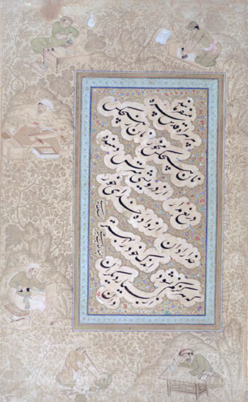 Wir bieten Ihnen eine handgefertigte Reproduktion auf Leinwand des berühmten Kunstwerks 'Unbekannter Titel' von Mir Ali Tabrizi, aus dem Reproduktionsmuseum.
