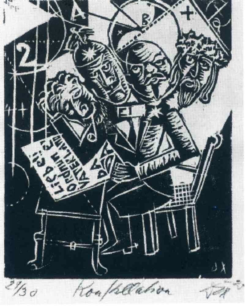 Wir bieten Ihnen eine handgefertigte Reproduktion auf Leinwand des berühmten Kunstwerks 'Die Prominenten: Konstellation' von Otto Dix, aus dem Reproduktionsmuseum.